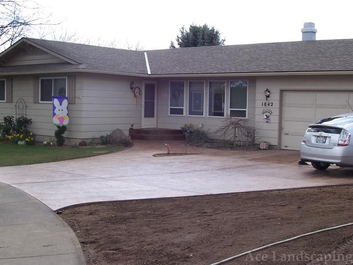 Here at Ace Landscaping we specialize in custom designed, artistic, and decorative colored stamped concrete, plus professionally installed raised aggregate and broom finished concrete: patios, driveways, steps, and walkways.