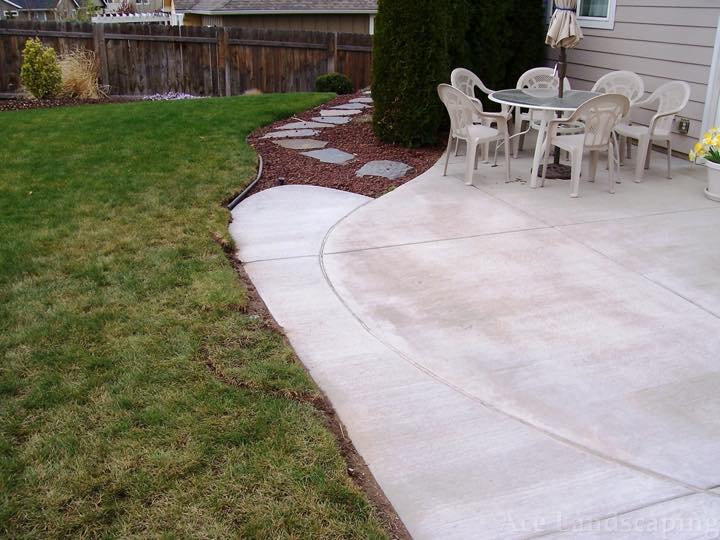 Ace Landscaping did extensive concrete and irrigation work for us. I was impressed with them insisting we use only the best heavy duty materials. The concrete is thick and reinforced, and the irrigation lines are top-of-the-line heavy gauge plastic. We are especially pleased with a custom curved sidewalk with exposed aggregate which provides a beautiful and practical connection between the front and back doors/porches of our large 1890 home.